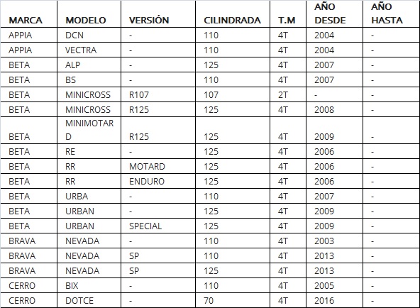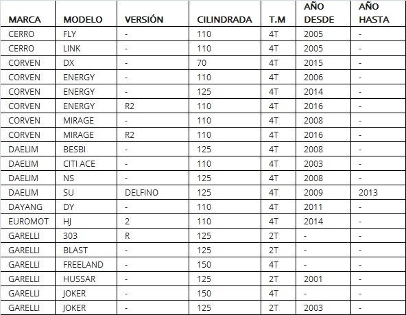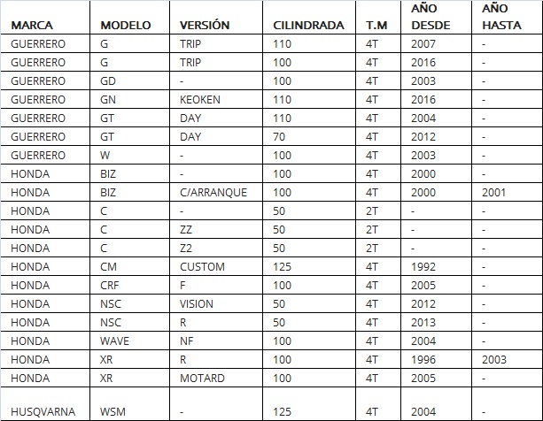 (DESCRIPCIÓN DEL PRODUCTO Y APLICACIONES EN MOTOS EN LA GALERIA DE FOTOS)